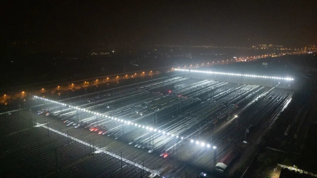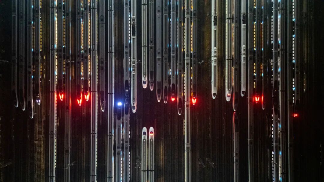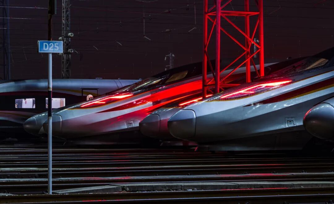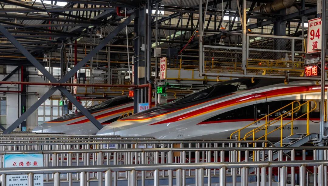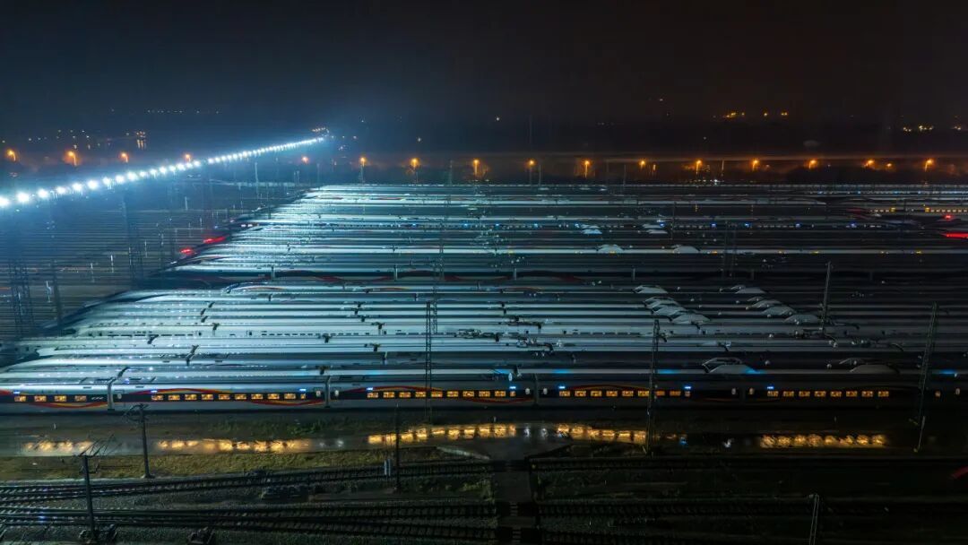 白昼渐长,美好向阳。第一缕晨光亲吻着钢轨,映照出 “陆地航母” 的银辉。在铁路人的细致检查下,每一列复兴号“容光焕发”,跃跃欲试驶向新征程。