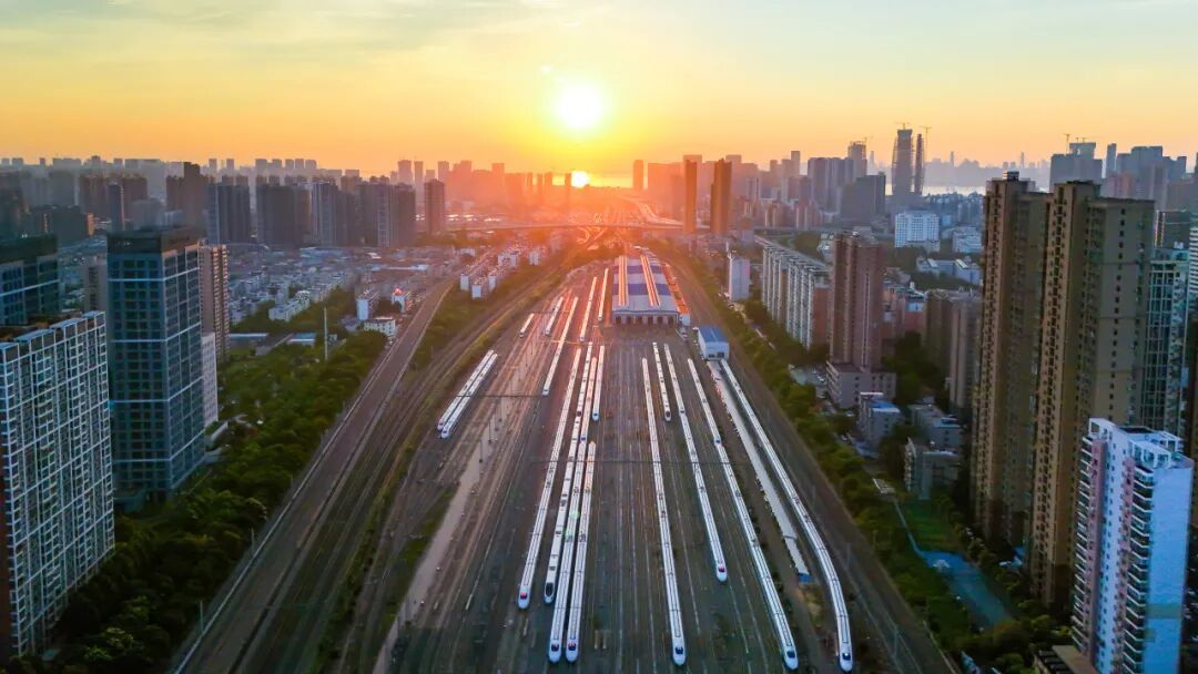 “陆地航母”整装待发,流线型身姿划破晨雾。在纵横四方的高铁网上,以风为弦,以轨为谱,奏响一曲奔赴未来的时代强音。