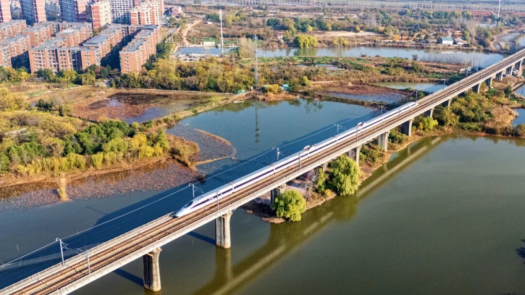 旭日初升,山河如画。在 “八纵八横” 高铁网中,复兴号在雪原上与寒风为伴。在峰峦间与叠嶂起舞,跨越山海串联起便捷出行路。